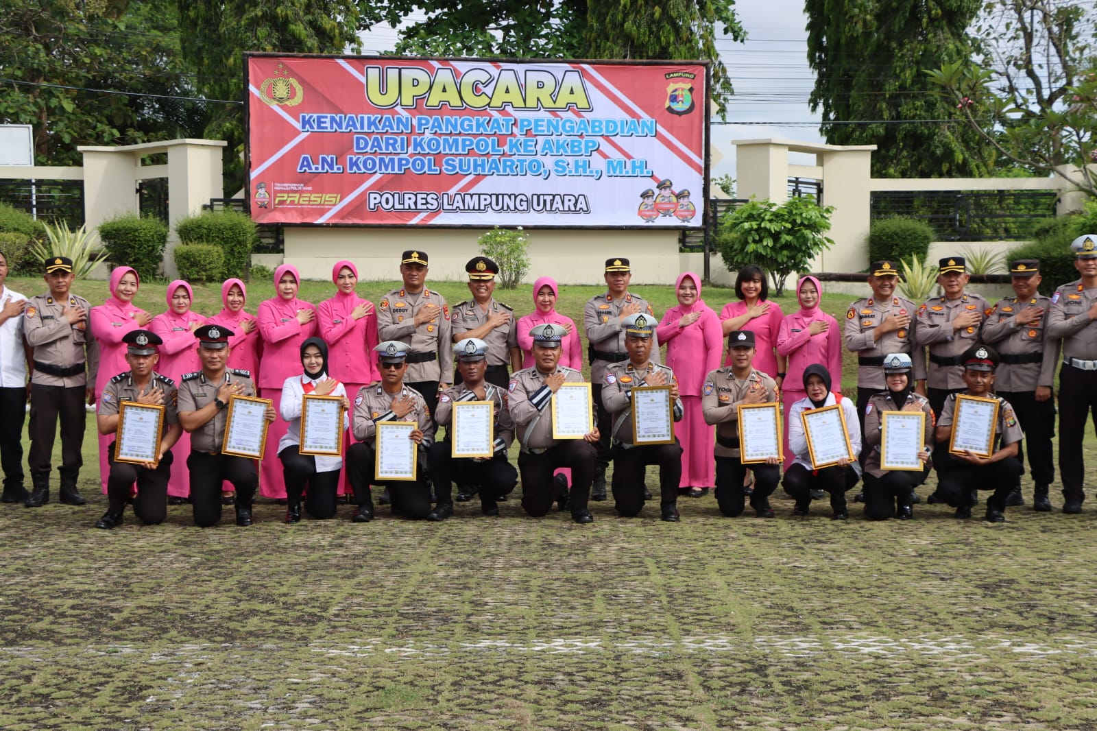 Upacara tersebut dihadiri oleh pejabat utama, para Kapolsek, perwira, brigadir, serta ASN jajaran Polres Lampung Utara.