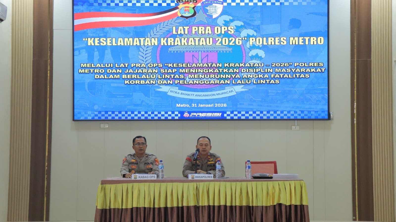 Metro — Menjelang pelaksanaan Operasi Keselamatan Krakatau 2026, Polres Metro Polda Lampung menggelar Latihan Pra Operasi (Lat Pra Ops) sebagai langkah awal mematangkan kesiapan personel. Kegiatan ini dilaksanakan pada Sabtu (31/1/2026) di lingkungan Polres Metro.
