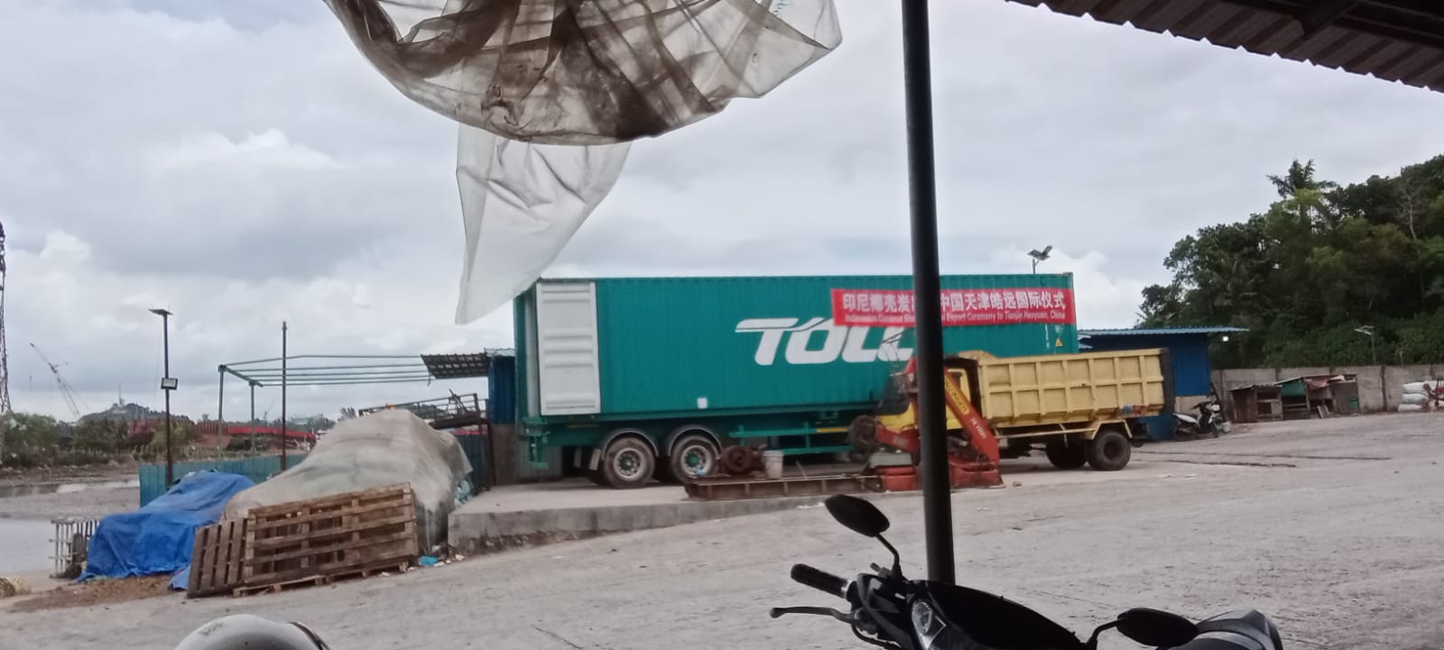 Tulisan tersebut mengarah pada aktivitas pengiriman komoditas arang tempurung kelapa ke luar negeri.