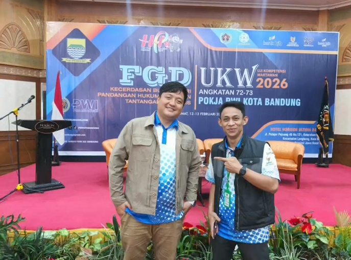 Indonesia. Publik.Com. Kota. Bekasi. Nio Deni Wartawan Indonesia Yang Menjabat Bendahara IWO I Kota Bekasi Lakukan UKW Muda, Dengan Jembatan Pokja PWI Kota Bandung dalam Uji Kompetensi Wartawan (UKW) yang digelar selama 2 hari 12-13 Februari 2026 di Hotel Horison Ultima Kota Bandung.